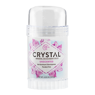 Crystal Stick Body Deodorant is made of 100% natural mineral salts, is chemical and perfume-free and contains no aluminium chlorohydrate. It is unscented, hypoallergenic, non-sticky, doesn’t stain and will last up to a year with daily use.